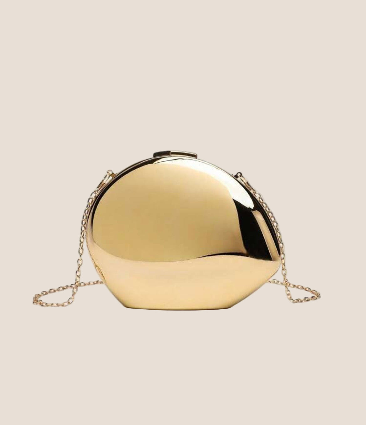 The rounded silhouette adds a modern, artful touch, while the delicate chain strap keeps it effortlessly chic. Whether paired with evening gowns, satin co-ords, or cocktail minis, this clutch brings instant sophistication to your look.