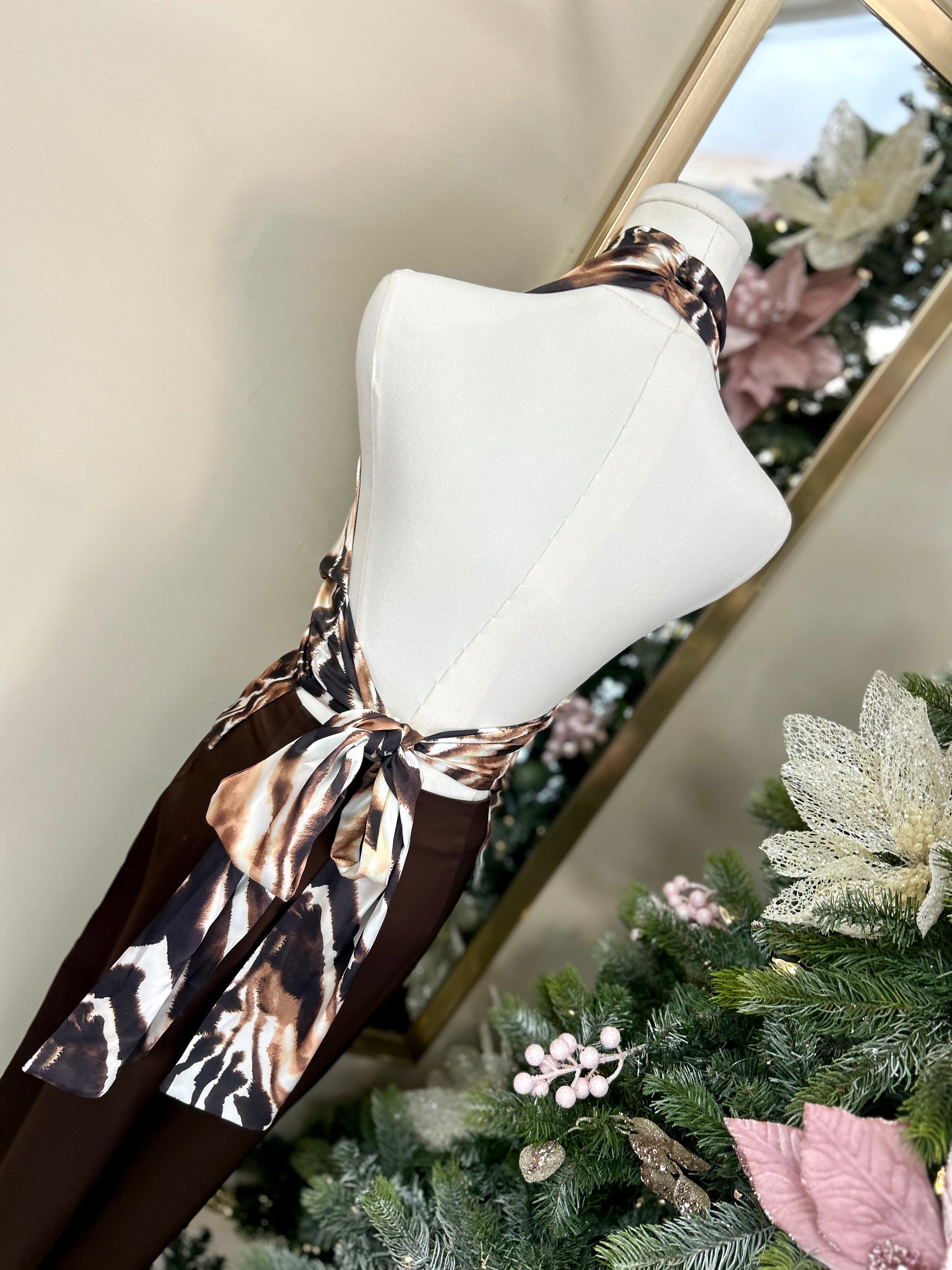 The rich, multi-tone safari print adds a striking touch, making it the perfect statement piece for nights out, vacation moments, or elevated day-to-night styling. Pair it with tailored trousers, denim, or a sleek skirt for a look that’s both wild and polished.